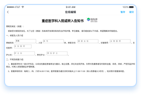 支持平台在线编辑,统一格式样式;支持关键字匹配,可由系统自动填入患者基本信息,减少手工书写内容,减少文书错误概率,提高知情告知效率。